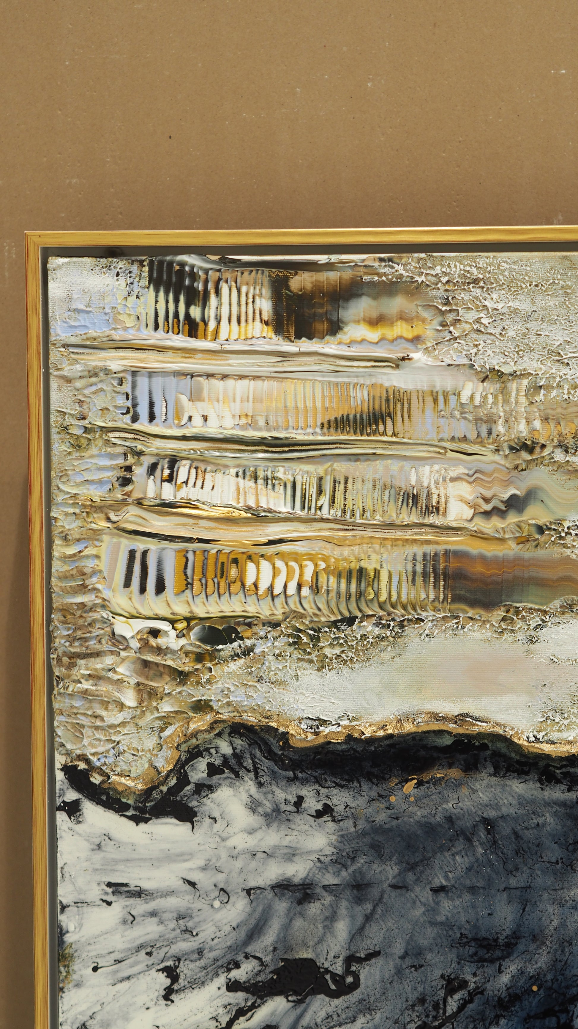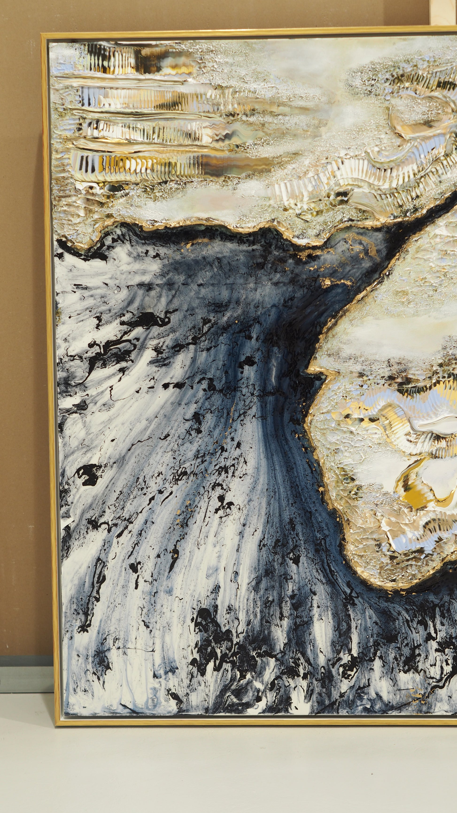 Verken ramas in med högkvalitativa L-lister i svart eller vitt med silver eller guldplättering.